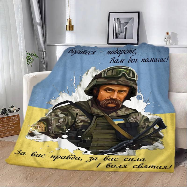 Плед покривало Патриотичний Борітесь 135х160 Блакитний Плюш-велюр