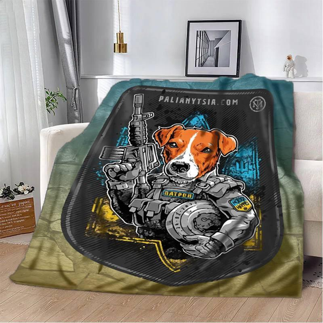 Плед покривало Пес Патрон Броненосець 135х160 Чорний Плюш-велюр
