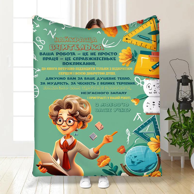 Плед покривало Найкраща вчителька 135х160 Зелена Плюш-велюр
