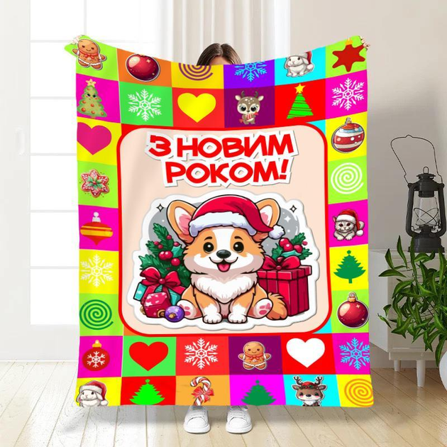 Плед покривало Новорічний коргі 2135х160 Різнобарвне Плюш-велюр