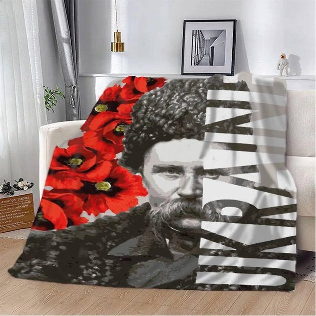 Плед покривало Тарас Шевченко 135х160 Сірий Плюш-велюр