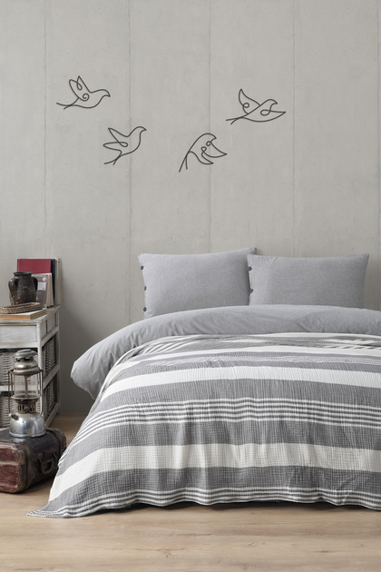 Покривало Vin San Muslin - bloom Сіре в смужку Євро 220х230 см (ПТ000697)