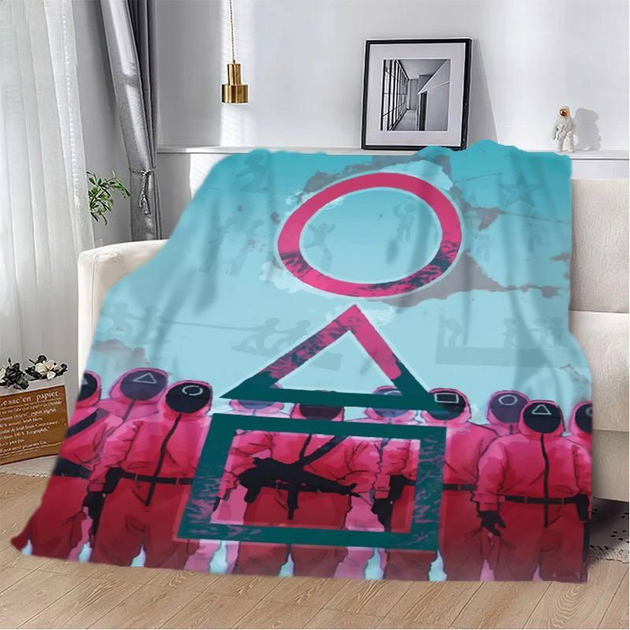 Плед покривало Гра в кальмара3 135х160 Блакитний Плюш-велюр