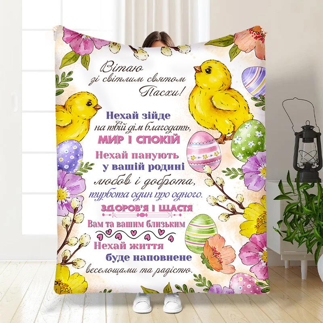 Плед покривало Новорічний Найкращі святкові вітання 135х160 Різнобарвне Плюш-велюр