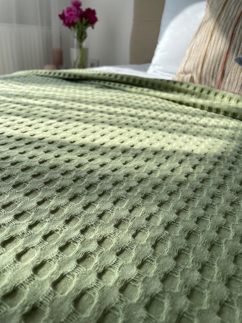 Вафельне плед покривало LavSon 100 органічна бавовна Односпальний 150х220 + 2 наволочки 45х45 Оливковий