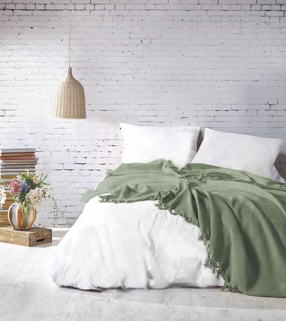 Вафельне плед покривало LavSon 100 органічна бавовна Односпальний 150х220 + 2 наволочки 45х45 Оливковий