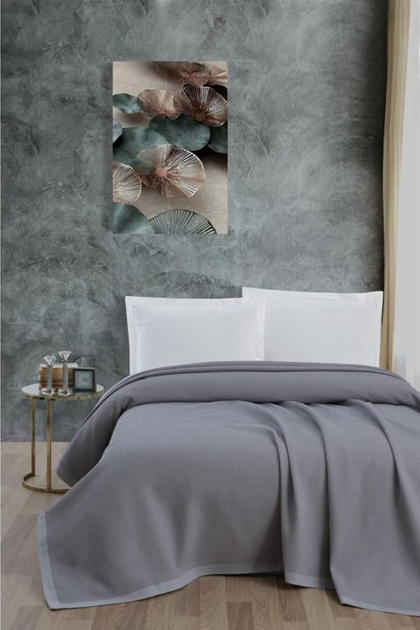 Покривало-піке Bysungur з бавовни 240х260 см Сірий