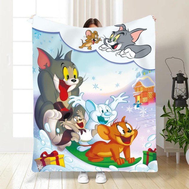Плед покривало Новорічний Том і Джері 160х200 Біла Плюш-велюр