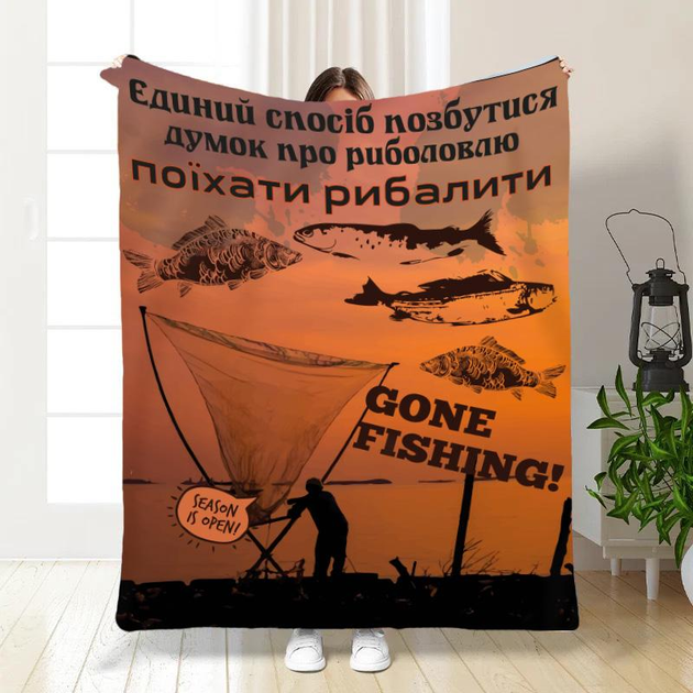 Плед покривало Полуторний Рибалка 2 160х200 Помаранчевий Плюш-велюр