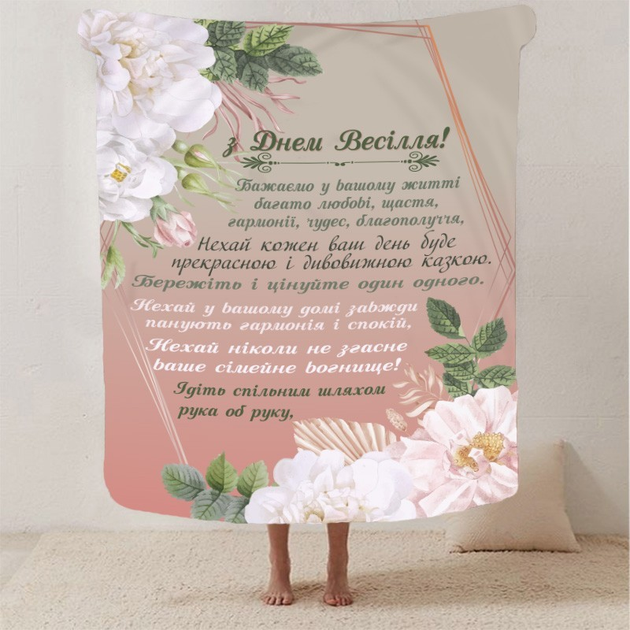 Плед покривало Полуторний з Побажаннями Весільні Романтика 160х200 Рожевий Плюш-велюр