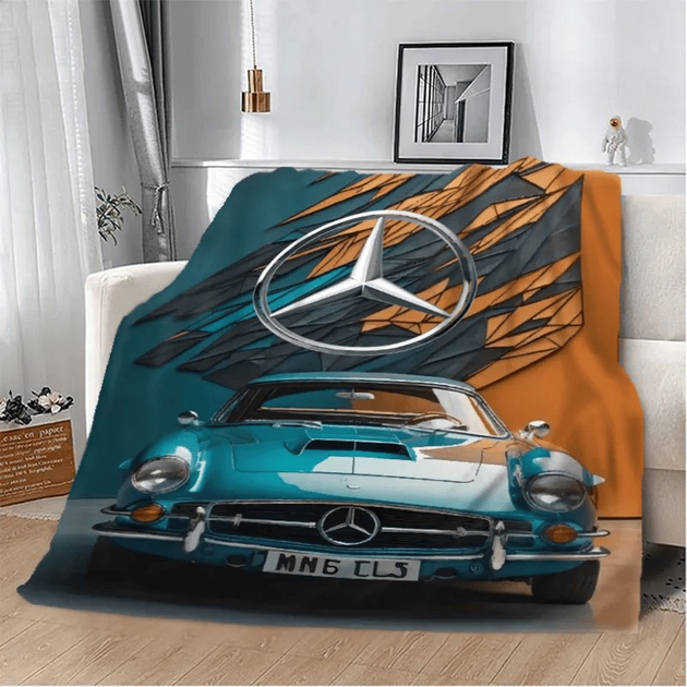 Плед покривало Полуторний Машини Mercedes- Benz 2 160х200 Помаранчевий Плюш-велюр