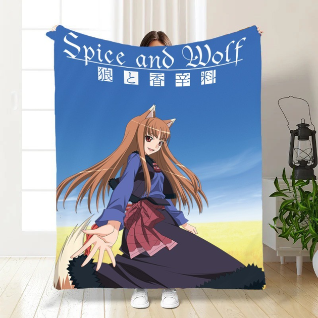 Плед покривало Полуторний Атака титанів Аніме 160х200 Блакитний Плюш-велюр