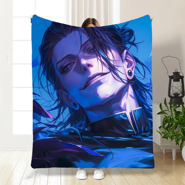 Плед покривало Полуторний Аніме 160х200 Сірий Плюш-велюр