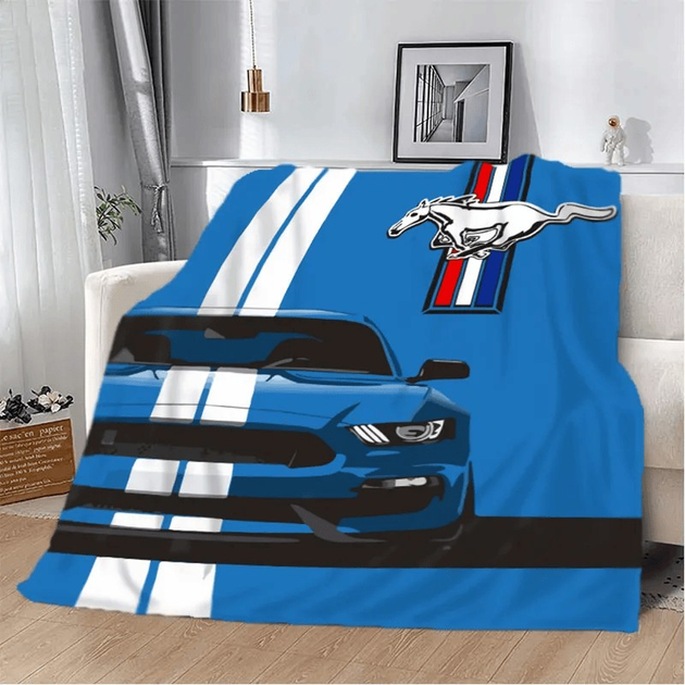 Плед покривало Полуторний Машини Ford Mustang 160х200 Синій Плюш-велюр
