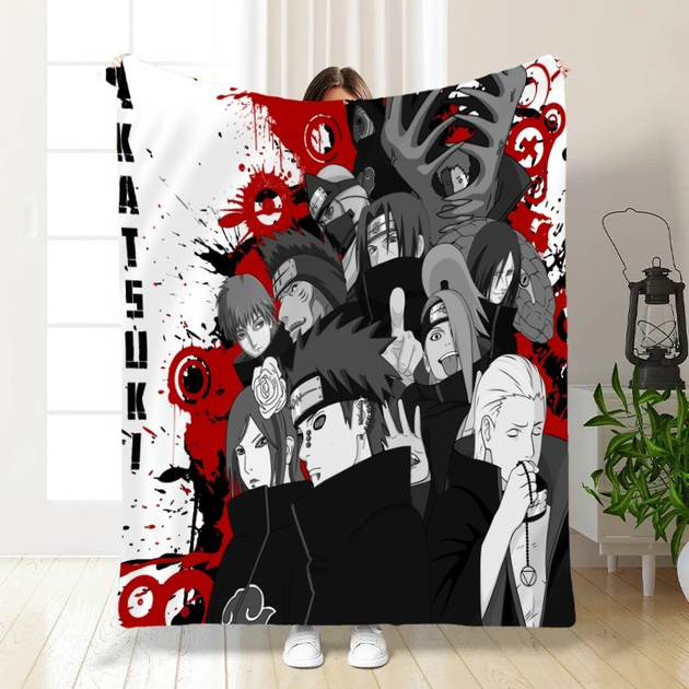 Плед покривало Полуторний Аніме Акацукі 160х200 Білий Плюш-велюр