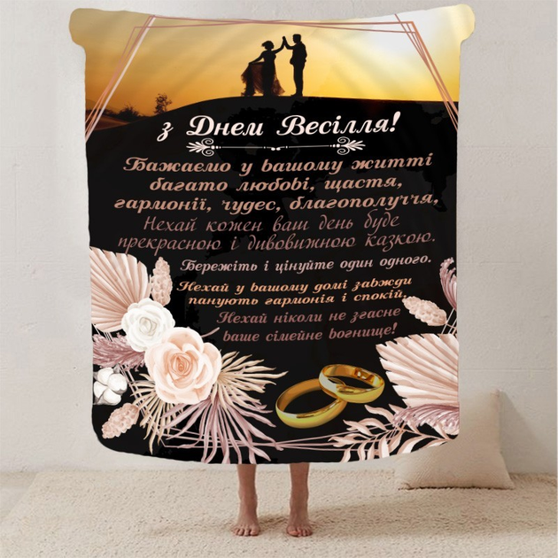 Плед покривало Полуторний з Побажаннями Весільні 160х200 Чорний Плюш-велюр