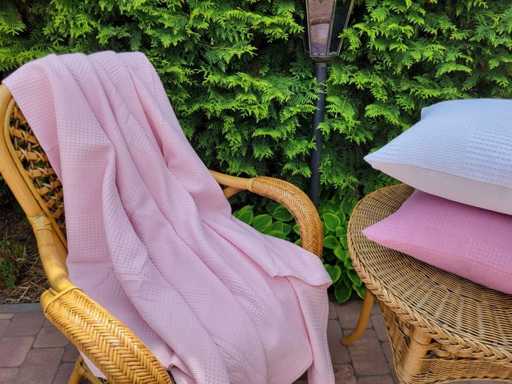 Бавовняний плед-покривало Піке Вафелька світло-рожевий 200х220, 100 бавовна