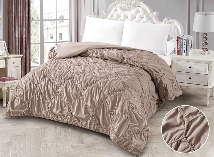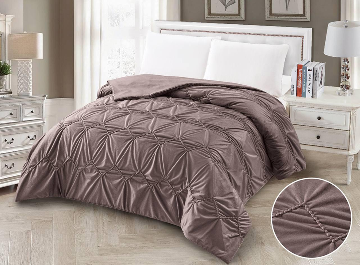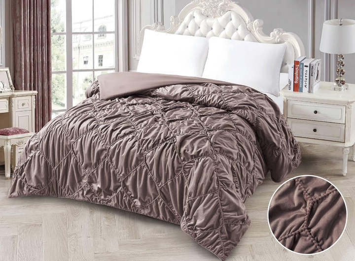 Покривало-ковдра стьобане з оксамитової тканини Євро 200х220 см кольору моко РОМБ (VM04)
