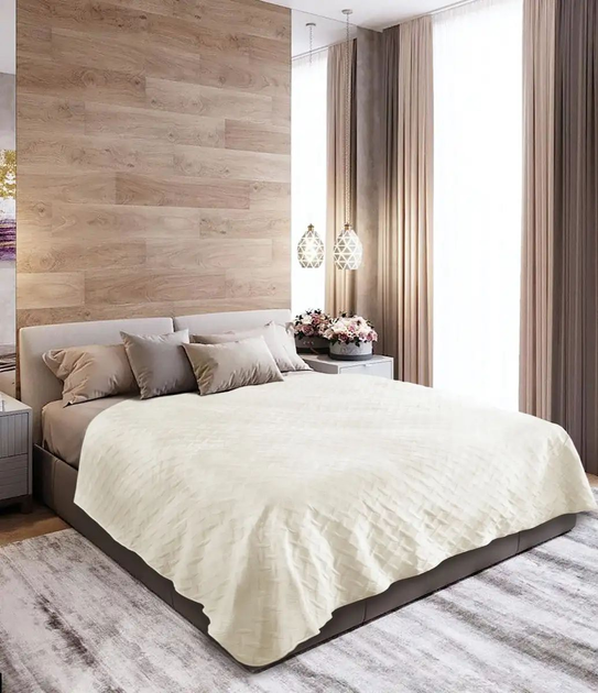 Двоспальне велюрове покривало 180*240 см гіпоалергенне ТЕП Молочне (24160180240)