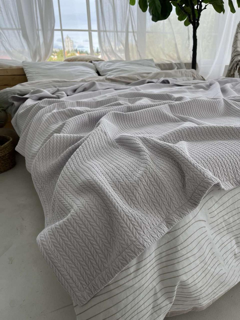 Покривало ZEINTEX Косичка бавовняне світло-сіре 230х260 см