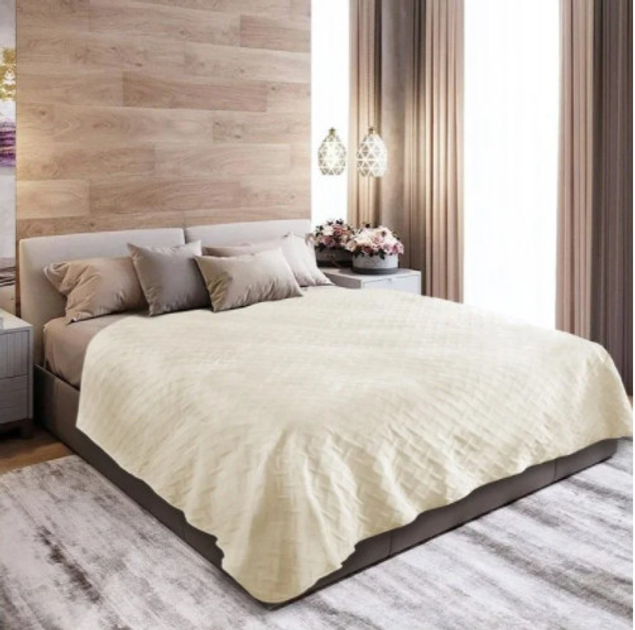 Двоспальне велюрове покривало 180*240 см гіпоалергенне ТЕП Молочне (24160180240)