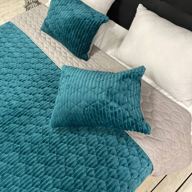 Стьобане покривало Cappone Смужка Бірюза 210х230 + 2 подушки 40х60 см