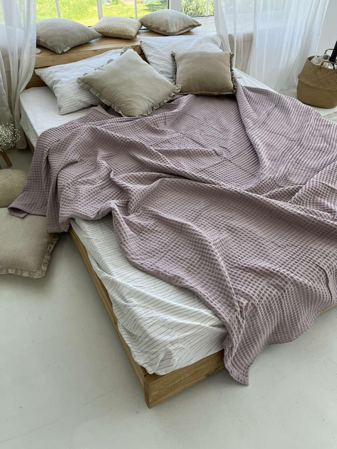 Вафельне плед покривало LavSon 100 органічна бавовна Односпальний 150х220 + 2 наволочки 50х70 Молочний