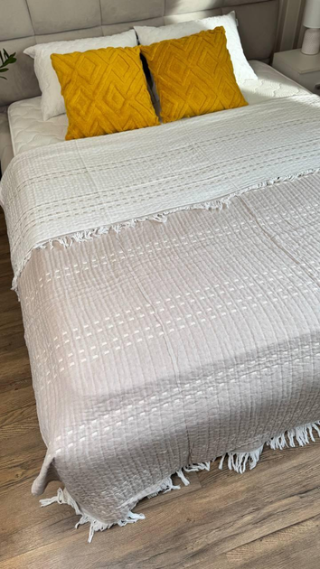 Вафельне плед покривало LavSon 100 органічна бавовна Односпальний 150х220 + 2 наволочки 50х70 Кремовий