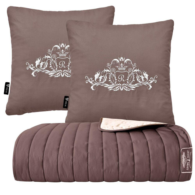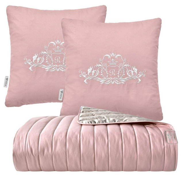 Покривало 220х240 см та 2 шт подушка 45х45 см декор з вишивкою IDEIA двостороннє, міцна стібка тканини пудра