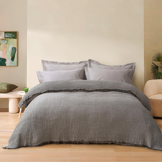 Бавовняне покривало на ліжко 230х200 Сірий (П4К-M-muslin03-05)