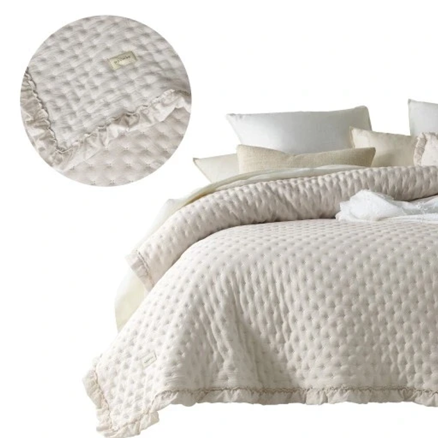 Покривало Room99 поліестер бежеве для ліжка/канапи 200x220 з оборкою Molly