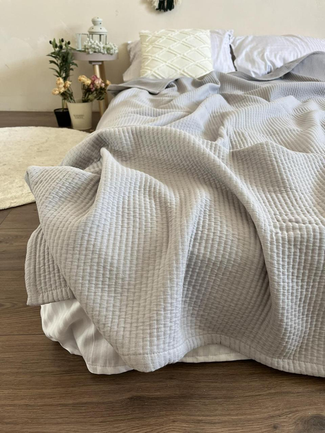 Вафельне літнє покривало Євро 200230 см +2 наволочки 5070 см із рюшами Сірий (Д-al-n-vaf-002)