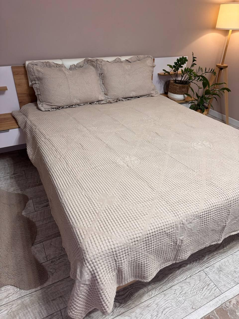 Покривало вафельне Євро 200х230 + 2 наволочки 5070 см із рюшами Бежевий (Д-al-n-vaf-003)