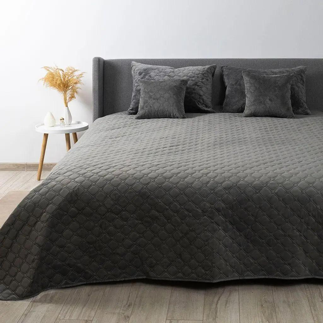 Покривало на ліжко VELOUR King Size 260х240 см Ромб круглий однотоннний Сірий