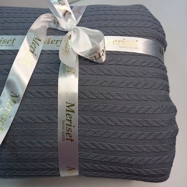 Плед покривало косичка LavSon 100 бавовна Півтораспальний Евро 200х230 + 2 наволочки 50х70 Сірий