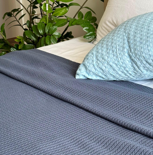 Плед покривало косичка LavSon 100 бавовна Півтораспальний 180х230 + 2 наволочки 50х70 Синій