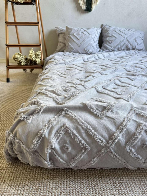 Покривало Велюрове м'яке Світло-сіре Євро максі розмір 240х260 см ромб/круглий