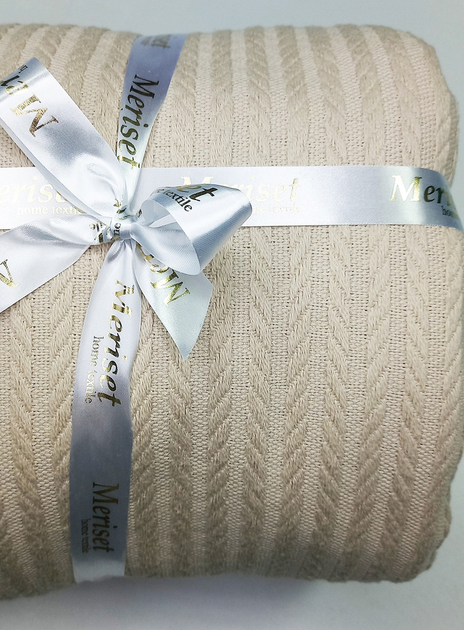 Плед покривало косичка LavSon 100 бавовна Півтораспальний Евро 200х230 + 2 наволочки 50х70 Бежевий