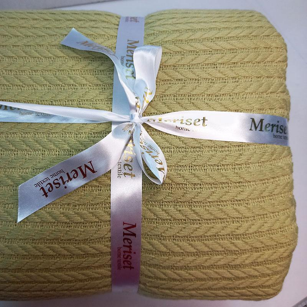 Плед покривало косичка LavSon 100 бавовна Півтораспальний Евро 200х230 + 2 наволочки 50х70 Гірчиця