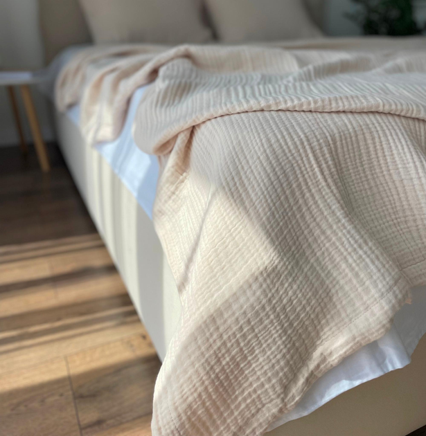 Плед покривало Муслін 4-х шаровий LavSon 100 органічна бавовна Односпальний 150х240 + 2 наволочки 50х70 Бежевий