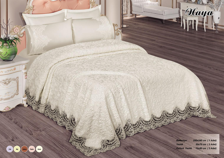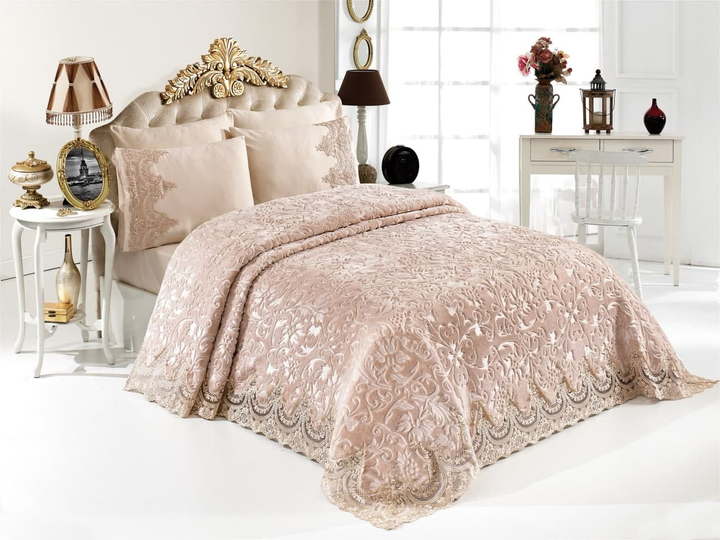 Велюрове мереживне покривало Tubanur з простирадлом і наволочками в подарунковій валізі 200х220см Бежевий