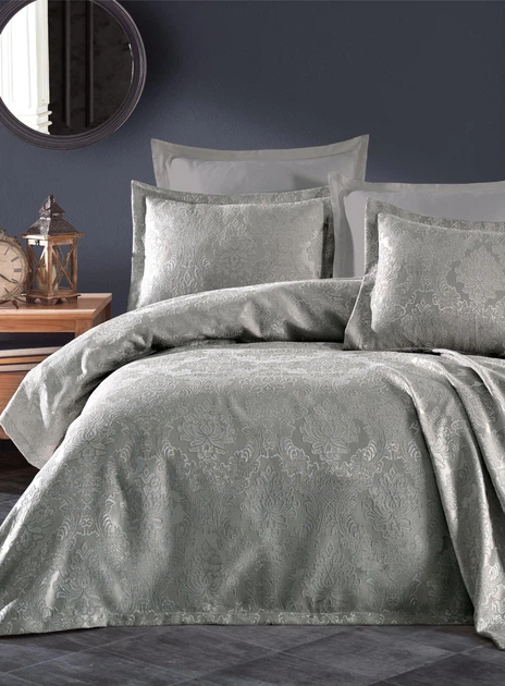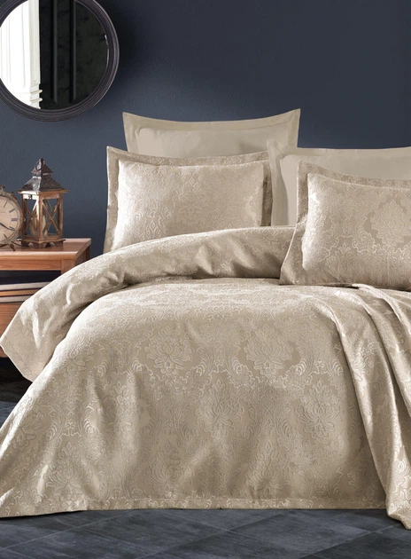 Жаккардове покривало з наволочками My Bed "Ezgi", бежево-сірий, 240x260 см, Євро-максі