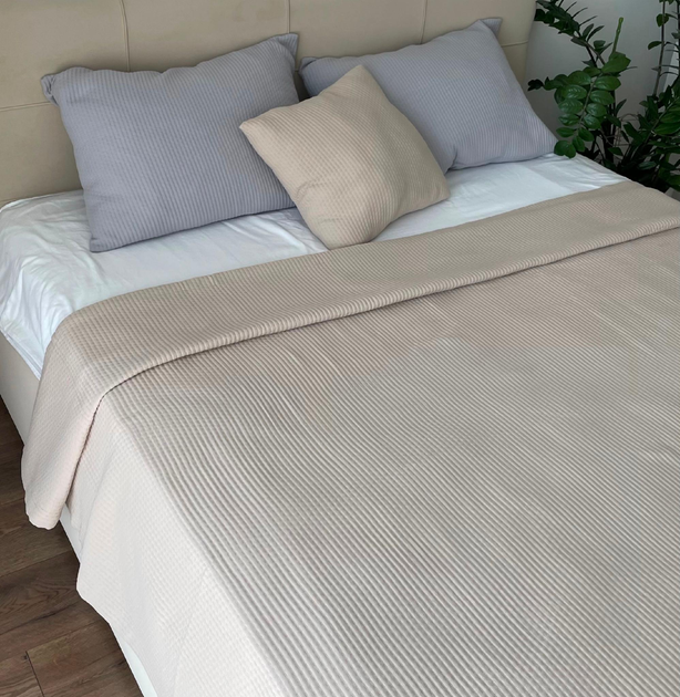 Покривало стьобане LavSon 100 бавовна Односпальний 150х230 + 2 наволочки 50х70 Бежевий