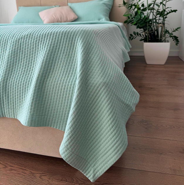 Покривало стьобане LavSon 100 бавовна Євро 240х230 + 2 наволочки 50х70 м'ята