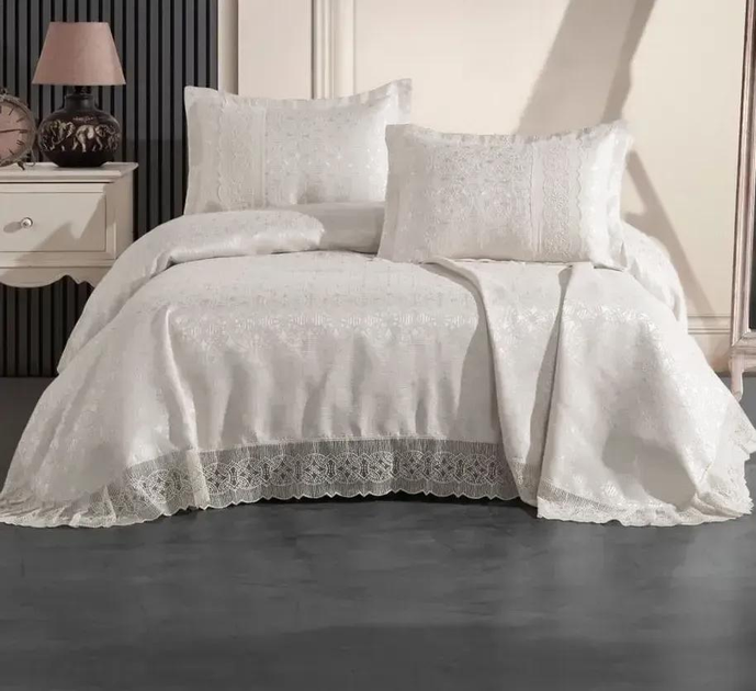 Вишукане турецьке жакардове покривало з мереживом та наволочками Moda Box AZEZ 240x260 Krem
