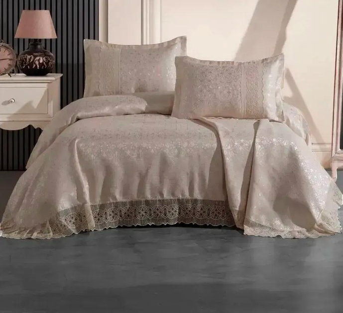 Вишукане турецьке жакардове покривало з мереживом та наволочками Moda Box NEVA 240x260 Krem