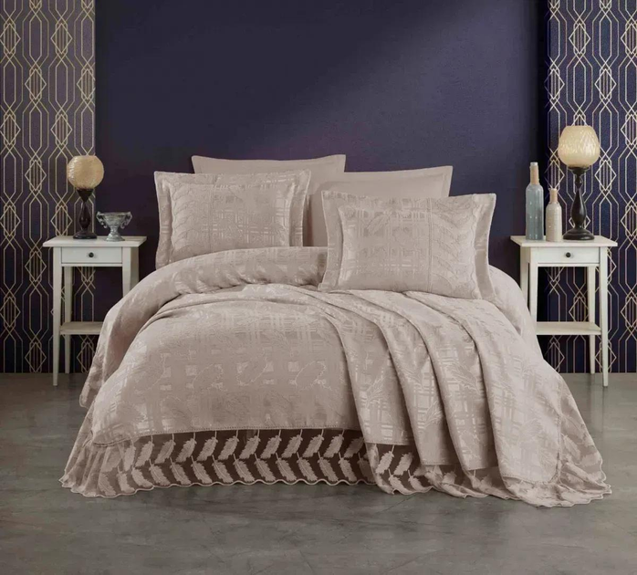 Вишукане турецьке жакардове покриваоло з мереживом та наволочками Moda Box AZEZ 240x260 Bej