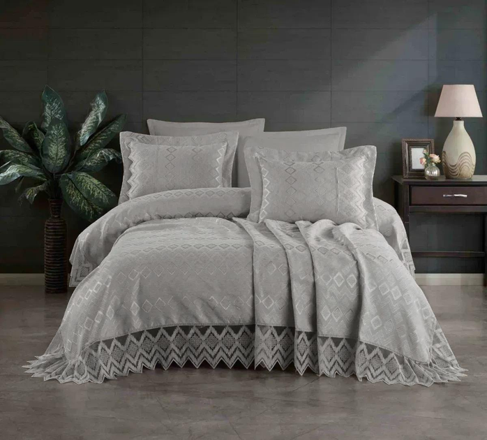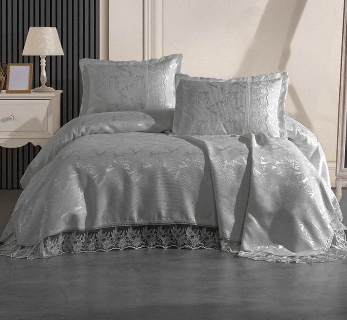 Вишукане турецьке жакардове покриваоло з мереживом та наволочками Moda Box NEVA 240x260 Gri