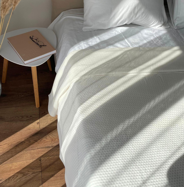 Плед покривало Муслін 4-х шаровий LavSon 100 органічна бавовна Двоспальний 220х240 + 2 наволочки 50х70 молочний