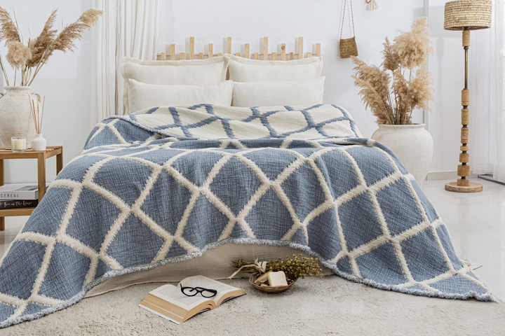 Муслінове покривало Saheser Savio 160 х 240 см. Blue синій